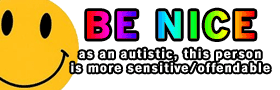 This person has Assburgers Syndrome, so you can't say anything bad! :-( Be aware of that, you insensitive fuck. |